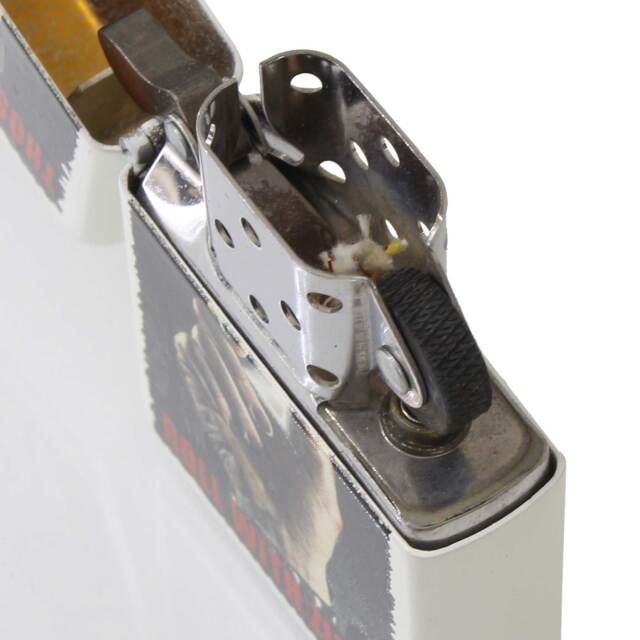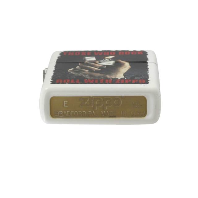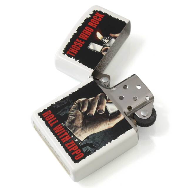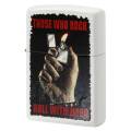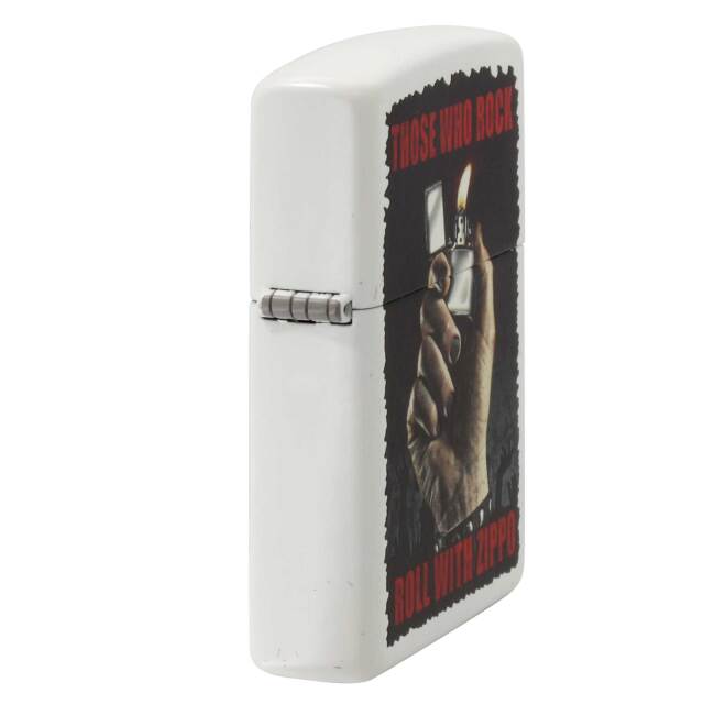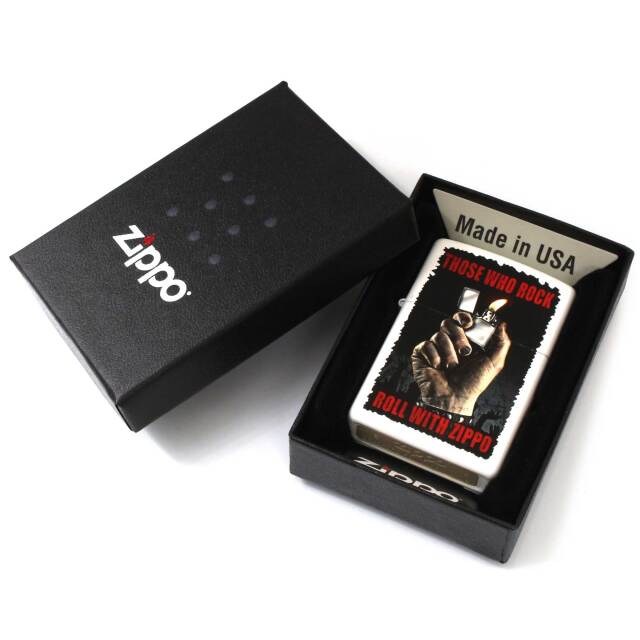 「ZIPPOでロックロールする人たち」を冠したデザインのZIPPO。無骨な手でZIPPOライターを掲げる、ロックなデザインです。ベースのホワイトとプリントの黒系がメリハリを出しています。マットホワイト、プリント。