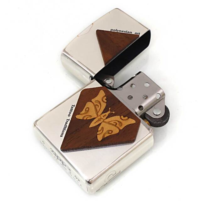 ダウンタウンデザインスタジオ社(Downtown Design Studio)シリーズ。検索すると他にもZIPPOを発売していたようです。このZIPPOは、ポリネシア文化のポリネシアンタトゥーをモチーフにデザインされたZIPPOです。銀メッキ、ウットプレート貼り。