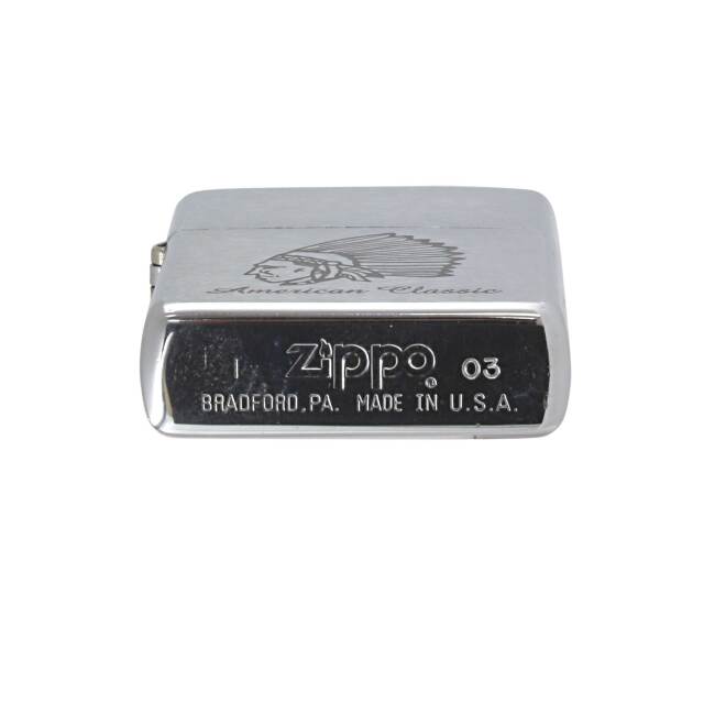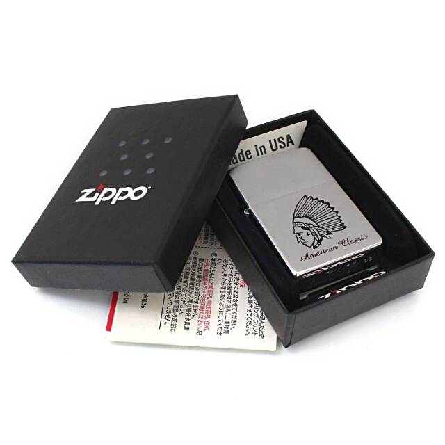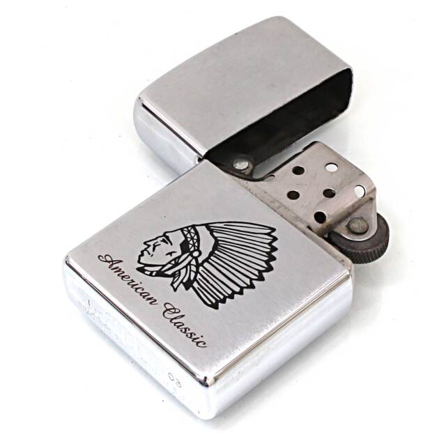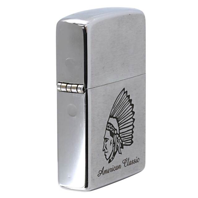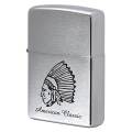 アメリカの先住民族のネイティブ・アメリカンのデザインが彫刻されたZIPPO。ベースは、#200ブラッシュドクローム、エッチング、色入れ。