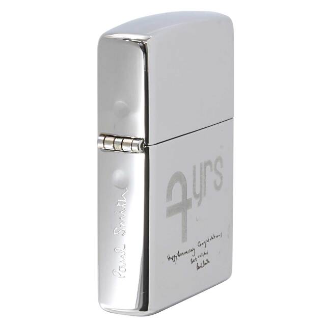 Paul Smith(ポール・スミス)は、イギリスのファッションブランドです。ブランドコンセプトは、「classic with a twist.」(ひねりを加えたクラシック)。洋服から小物まで多岐に渡って商品を展開しています。ZippoとPaul Smith(ポール・スミス)のコラボレーションライター、シンプルながらも独創的かつ斬新なデザインが特徴。詳細は不明ですが、「Happy Anniversary Congratulations」の刻印があるので、周年記念モデルかも知れません。ハイポリシュクローム、エッチング。