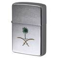 サウジアラビアの国章がデザインされたZippo。サウジアラビアの紋章(パームツリーと交差した剣)が描かれています。ブラッシュドクローム。