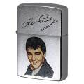 エルヴィス・プレスリーの肖像画とサインがデザインされたZIPPO。エルヴィス・プレスリーは、「キング・オブ・ロックンロール」と称される、20世紀のアメリカを代表する伝説的な歌手・俳優。数多くの記念モデルや限定デザインがリリースされています。ブラッシュドクローム、プリント。
