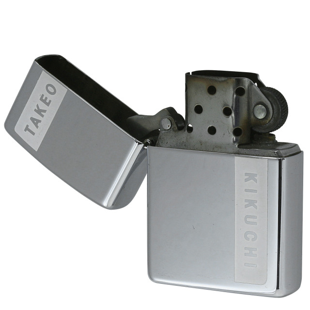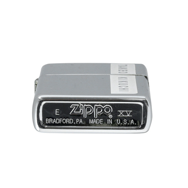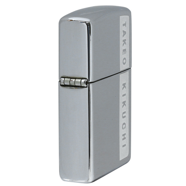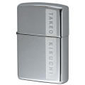 ファッションブランド「TAKEO KIKUCHI」のZippo。タケオキクチ(TAKEO KIKUCHI)は、デザイナーの菊池武夫氏がクリエイティブディレクターを務めるメンズファッションブランド。正面サイドのブロンドロゴがアクセントになる、シンプルながら洗練されたデザインです。ハイポリッシュ、クロムメッキ仕上げ、エッチング、色入れ。