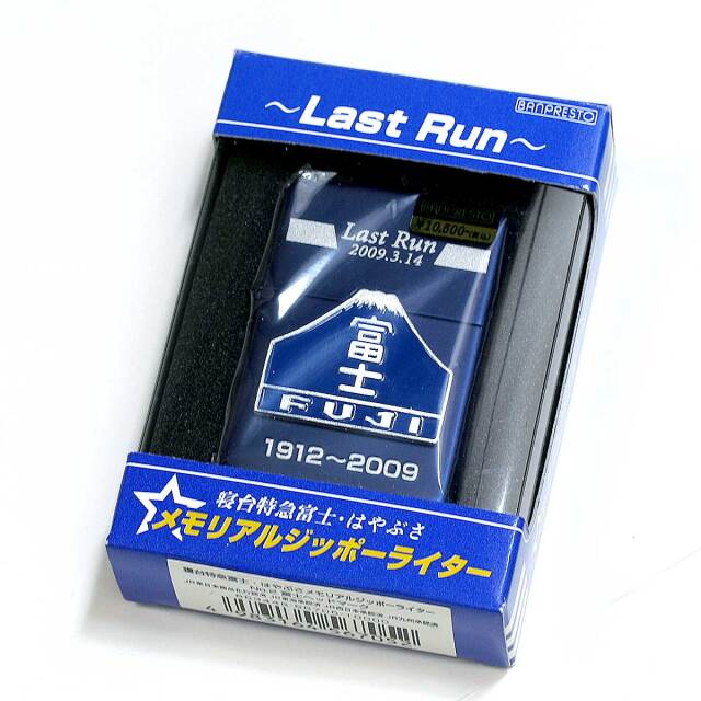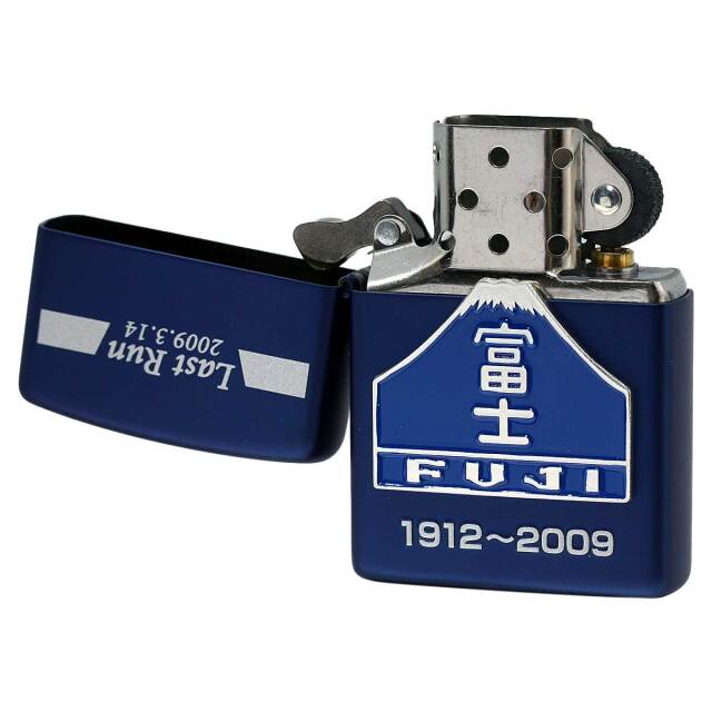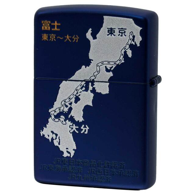 「寝台特急富士・はやぶさ」のラストランの記念ZIPPO。ブルーマットに富士ヘッドマークのメタル、裏面には東京~大分までの路線図が描かれています。コレクションにいかがでしょうか?