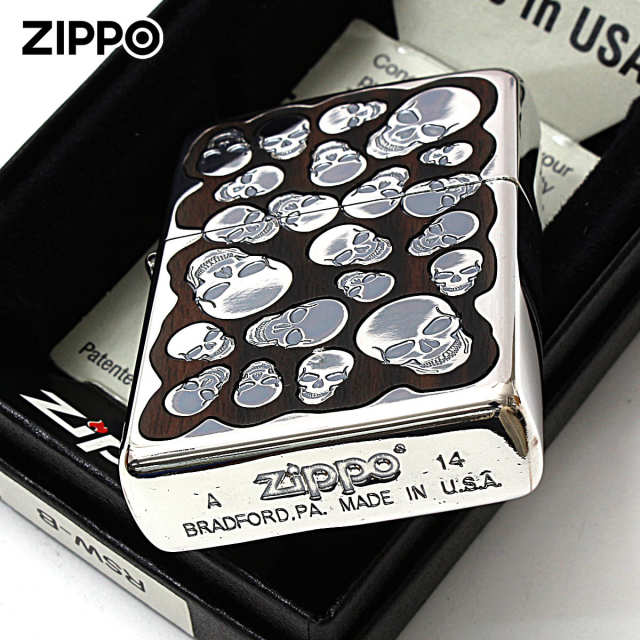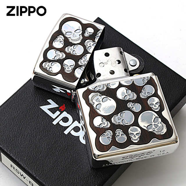 ウッドをベースにスカルを散りばめたZIPPO。イブシ仕上げのスカルが、ウッドにマッチ!贅沢に銀メッキをあしらい、古美仕上げを施したこのZippo、まるでアンティーク品のようです。