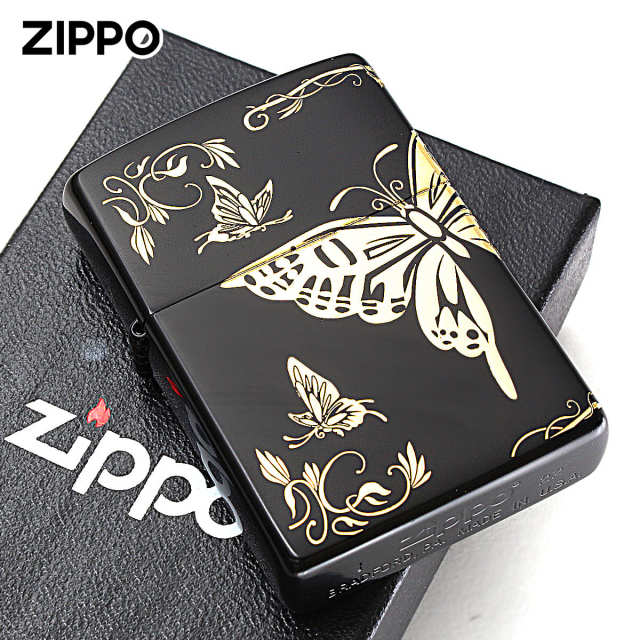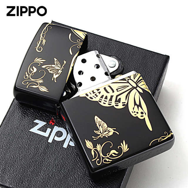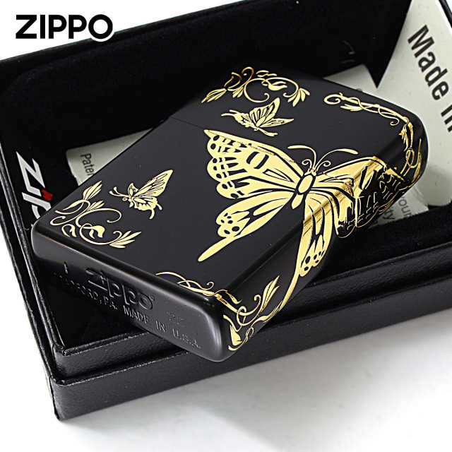 表面から側面の2面にかけて蝶を装飾したZIPPOです。