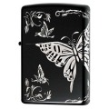 表面から側面の2面にかけて蝶を装飾したZIPPOです。