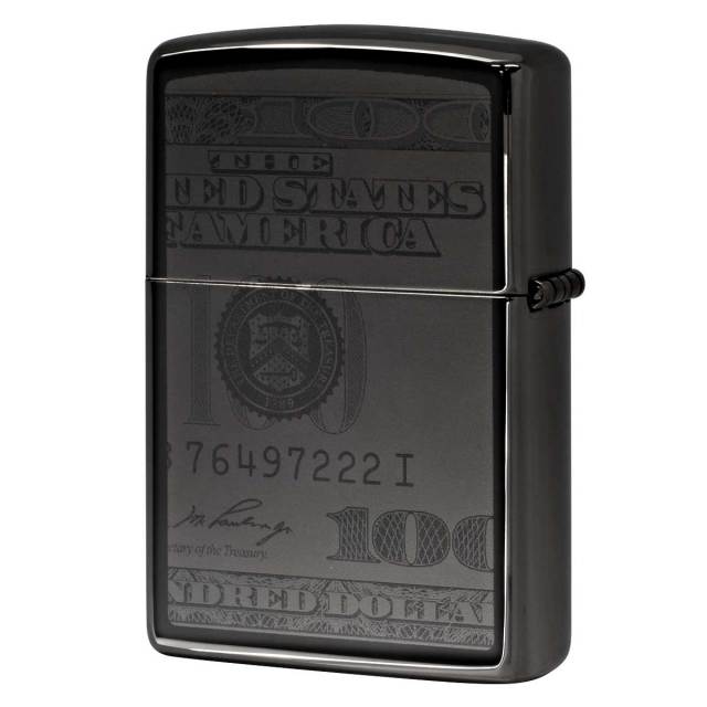 アメリカの100ドル紙幣をデザインしたZippo。表面には、ベンジャミン・フランクリンがアップでデザイン。見ているだけで、お金持ちになった気分になれそうです。気分を持ち上げてくれるアイテムになるかも?!