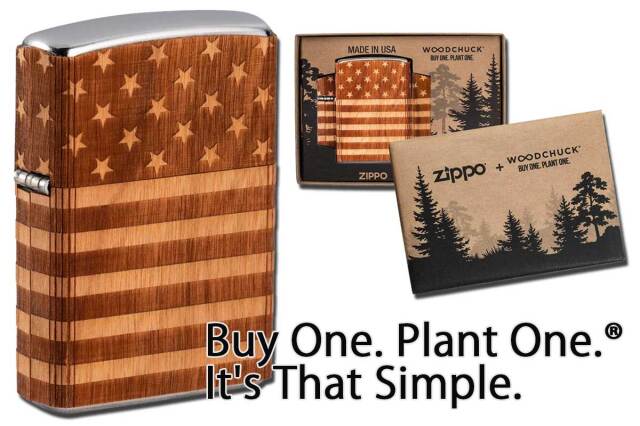 Zippo社とWOODCHUCK USAの「Buy One」との提携で実現した「BUY ONE. PLANT ONE.」プログラム。このZippoが、1個販売されると1本の木が植えられます。また、Zippo毎に番号が付随し自分の木が植えられた場所を知ることが出来ます。森林の復元と保護の活動に参加出来るチャンス!両面ウッド貼りの温かみのあるZIPPO。