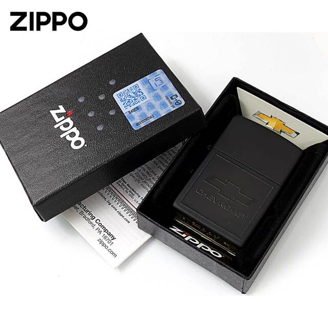 シボレー(Chevrolet)はシェビーChevyの愛称で親しまれる、アメリカGM(ゼネラルモータース)の乗用車ブランド。ブラックマットにブラックでロゴが加工された、シックなZIPPO。シボレーファンのあなたにオススメ!