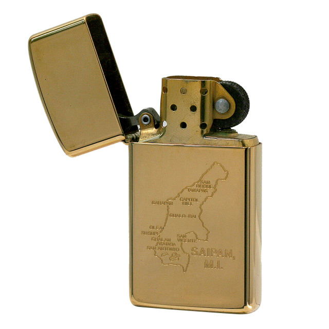キャンドボトムの真鍮製スリムケース。サイパン島の地図がエッチングで表現されています。