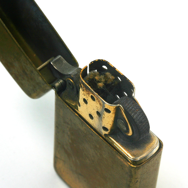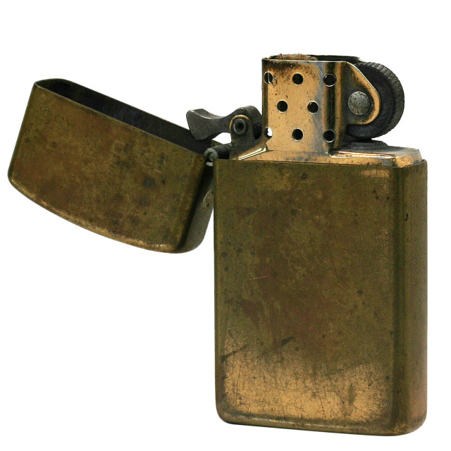 全体的に使用感ありますが、状態がよく真鍮素材ならではのアンティーク感が出ています。このスリムZIPPOの底面には見られない、ソリッドブラス専用の刻印「1932 ZIPPO 1989」が刻印されています。