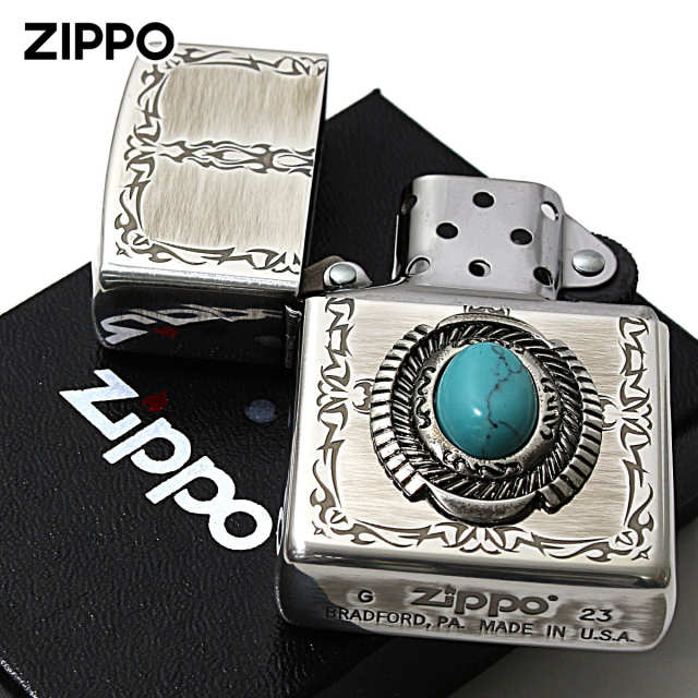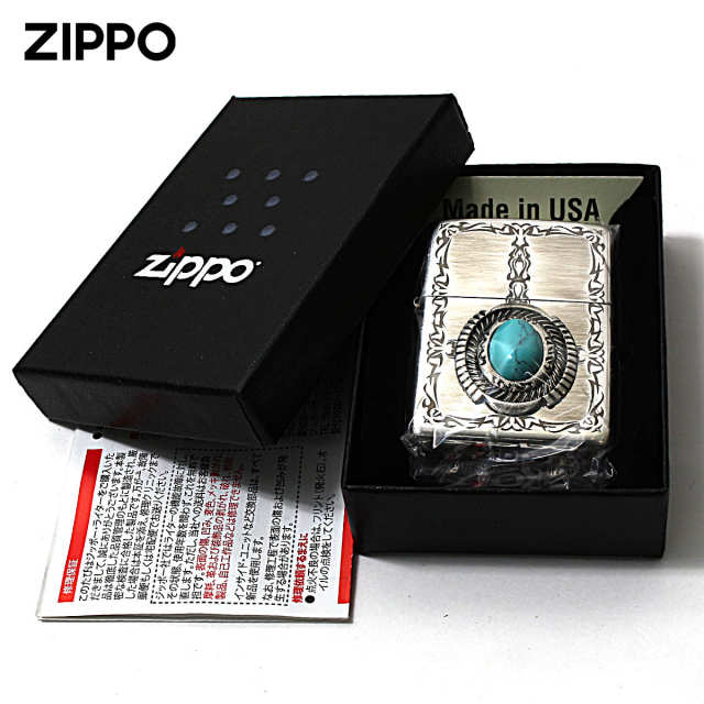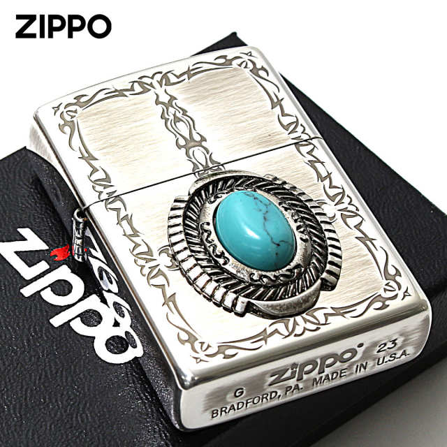 まるで本物のターコイズ(天然石)の様なイミテーションストーンを使用したZippoです。イミテーションストーンを使うことで価格を抑えたリーズナブルなモデル。天然石を使用したZippoは、価格が高くて手が出ない方にオススメです。