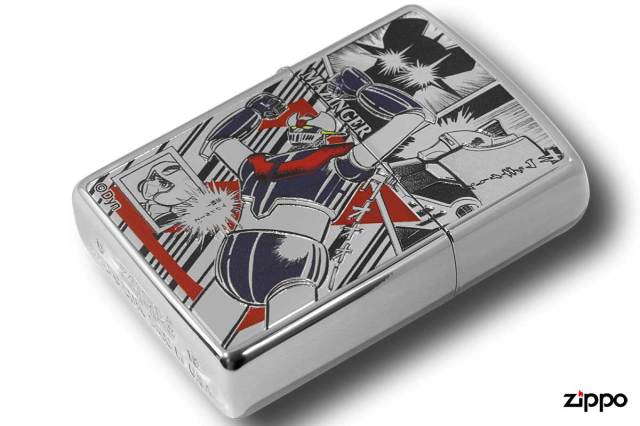スーパーロボット「マジンガーZ」とその名シーンをメタリックな質感でデザイン!まさに「鉄の城」と謳われるに相応しい、マジンガーZの魅力がたっぷりのZIPPOライターです。迫力溢れるマジンガーZをメインに、パイルダーON!のドッキングシーンデザイン。モノクロの背景はデザインを一段掘り下げるエッチング加工を、またメインのマジンガーZは、デザインを周囲より一段高く盛り上げる加工とグラフィックプリントでインパクトたっぷりに表現。さまざまな加工技術を用い、小さなZIPPOライターのフェイスでも奥行きと立体感を感じるディテールとなっています。