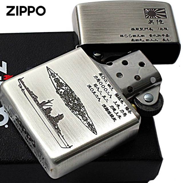 1918年八八艦隊計画の長門型2番艦として起工された戦艦「陸奥(ムツ)」のZippoライター。艦名は青森県から福島県にかけての旧国名・陸奥国に由来します。竣工当時は世界に7隻しか存在しなかった40cm砲搭載戦艦として『世界七大戦艦(ビッグ7)』と呼ばれました。連合艦隊の旗艦として、また、大日本帝国海軍の象徴として、1番艦の「長門」と共に、長い間日本国民から親しまれましたが、1943年6月、柱島泊地にて停泊中に主砲火薬庫から大爆発を起こして沈没。爆発の原因は現在に至るまで不明です。戦後、民間のサルベージ会社によって艦体の75%が引き揚げられ、艦首や砲身は「陸奥記念館」や「靖国神社」等の日本各地で展示されています。大日本帝国海軍史上最大の爆沈事故を起こした「悲劇の戦艦」としても有名です。